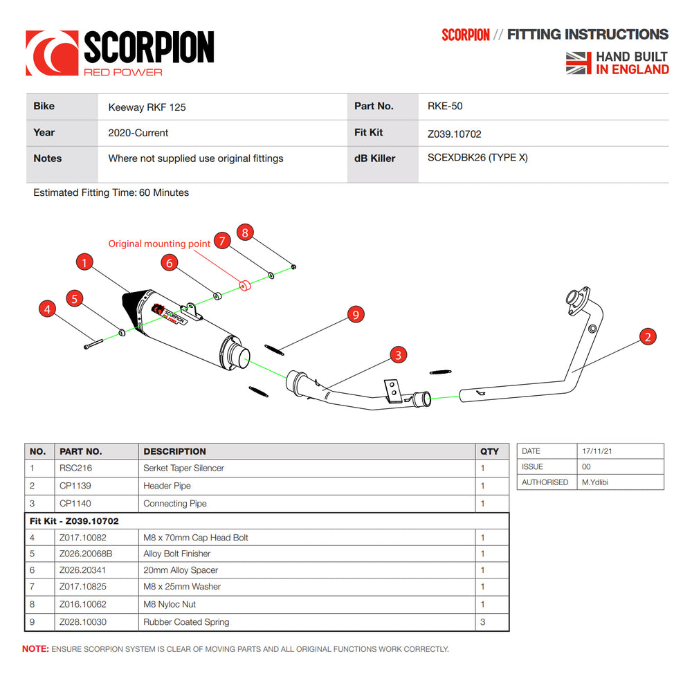 - Fittings/Instructions - All Scorpion products are supplied with everything needed to fit and ride, along with parts drawings and picture instructions where necessary