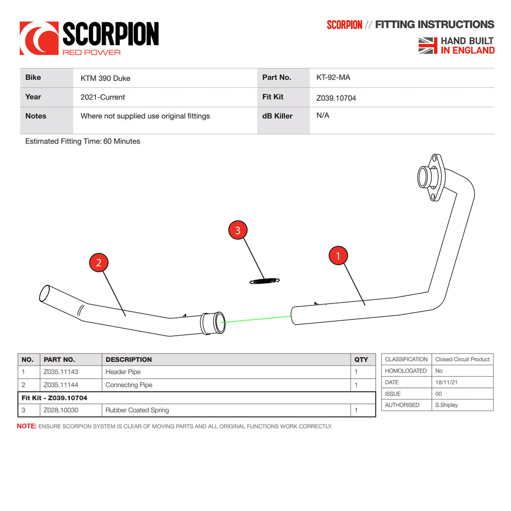 - Fittings/Instructions - All Scorpion products are supplied with everything needed to fit and ride, along with parts drawings and picture instructions where necessary