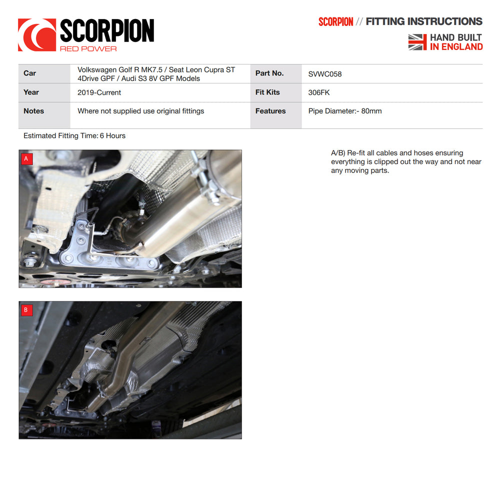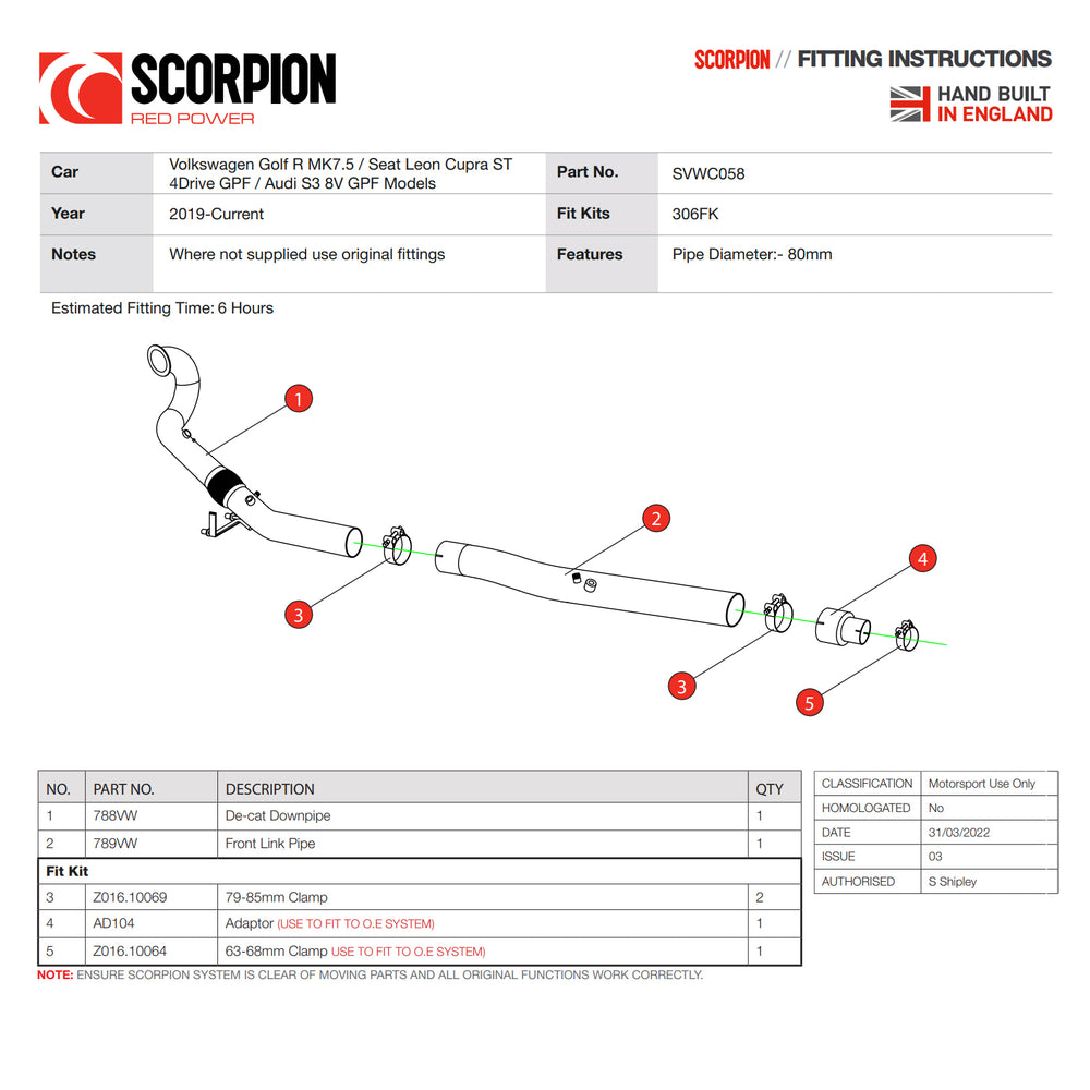 - SVWC058 - Scorpion Car Exhaust De-Cat Downpipe compatible with Seat Leon Cupra ST 4Drive Carbon Edition (GPF Model) 2018 - 2019, consisting of:
