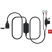 Seamlessly integrate your choice of USB charger with your motorcycle. Mount your charging port somewhere convenient using the included 3M sticky pad then simply run the attached ring leads directly to your battery terminals. Once the charging point is neatly positioned and cables hidden away, the charging port provides up to 3 Amps of power, perfect for mobile devices. Your phone or device is then protected from any potential surge in power thanks to the in-line fuse.