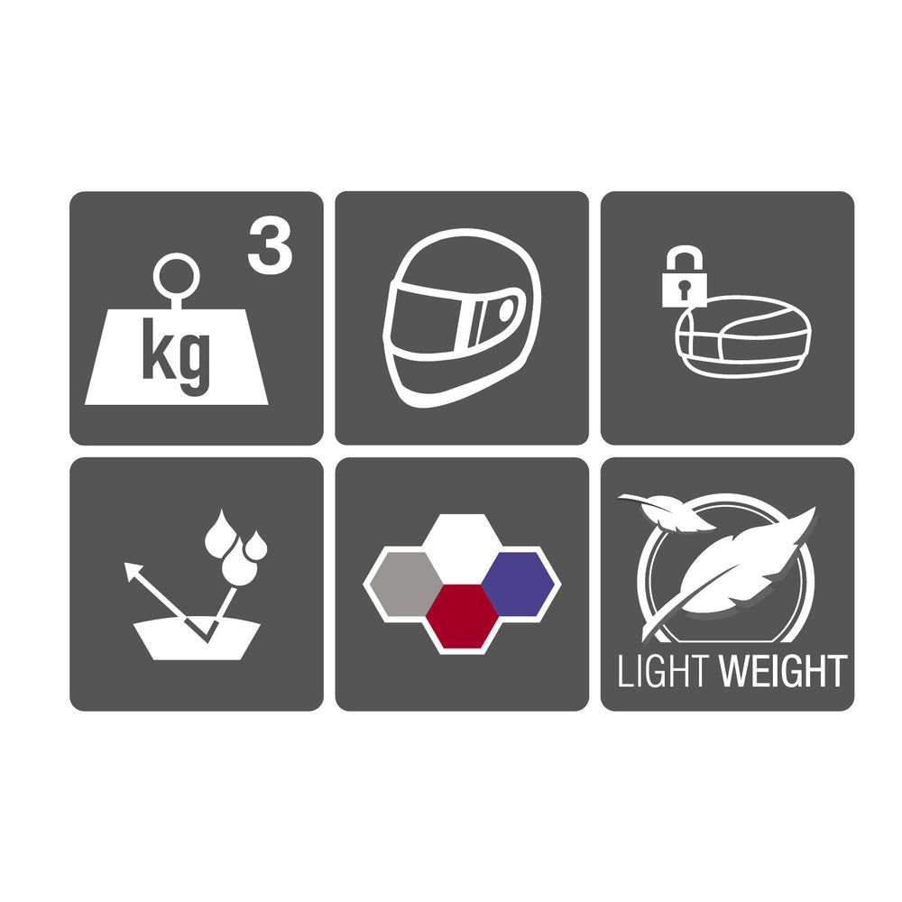 - Capacity: 40 L (Fits 2 Open Face Helmets)