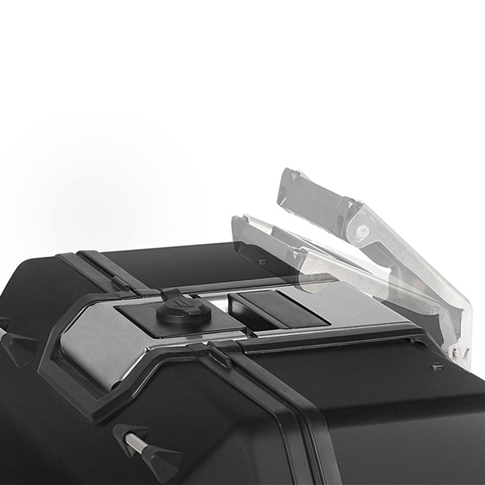 The SHAD TR55 Terra motorcycle top box is a fully waterproof, fully lockable, adventure-style top box accenting a smoothed profile and unique structural design elements, weighing in at only 5.4 kg, the SHAD TR55 is the lightest box in its category. Every TR55 incorporates a fully waterproof system, made possible by a double profile rubber edge gasket, sealed by the integrated compression handle. The TR55 also features a unique double locking system with high grade AISI 304 stainless steel. Single hand operation: quickly open, close, lock, lock in place and remove with just one hand.