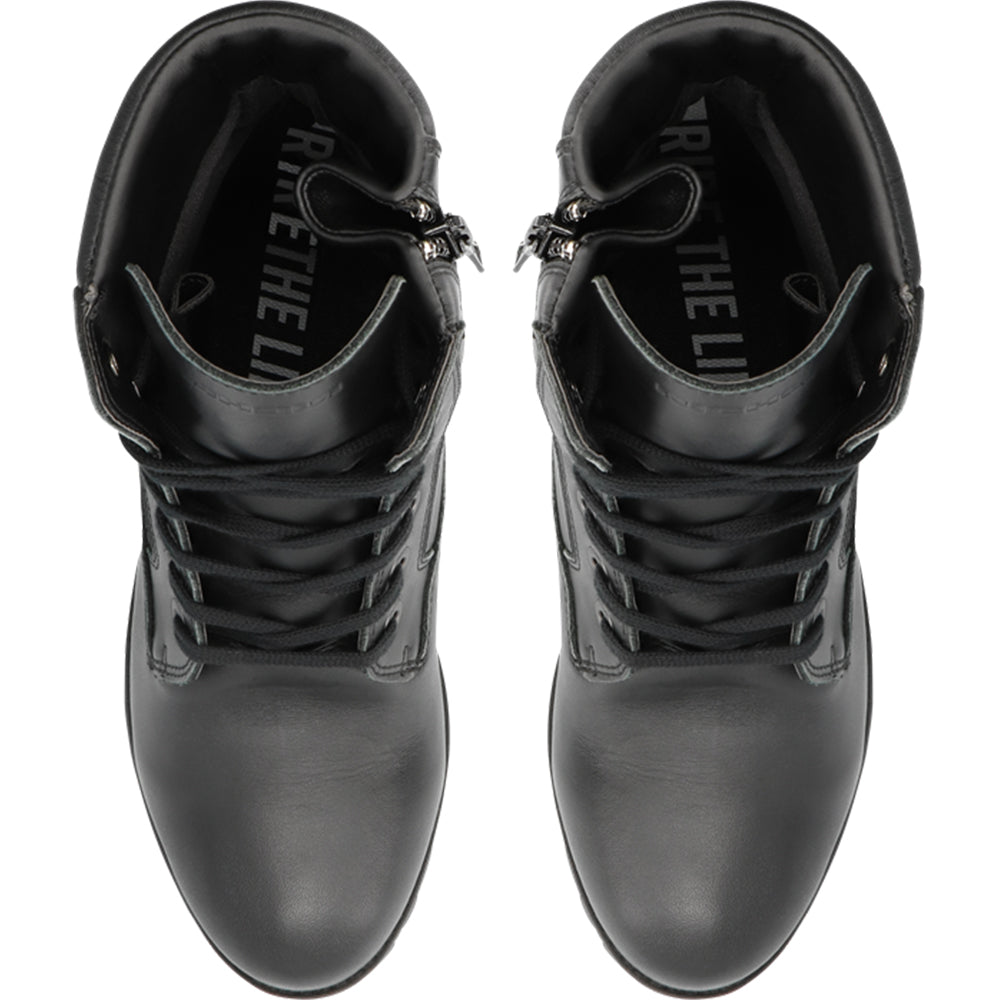 - Lacing closure in combination with a YKK side zipper offering an easy step-in