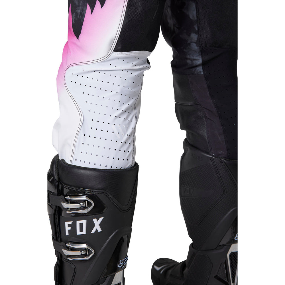 The Flexair Pants are utilizing Fox's Rider Attack Position (RAP) construction for greater comfort and fit while in the riding position, the main body uses TruMotion stretch fabric for a balance of mobility and durability. A double-layer knee system combines a full-grain leather outer knee with an abrasion-resistant inner knee, guarding against both external and internal wear and tear, while the knee system is also smartly tailored for compatibility with braces and guards. To help regulate body temperature, strategically placed venting is incorporated to increase airflow.