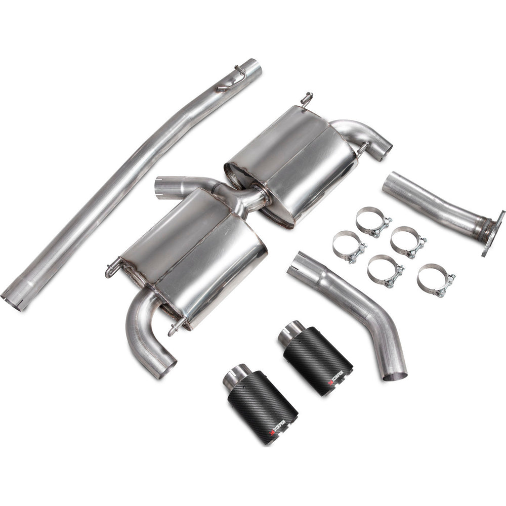 - SSUS010CF - Scorpion Car Exhaust Cat-Back System (Non-Resonated) Twin 100mm Carbon Fibre Ascari compatible with Toyota GR86 & Subaru BRZ ZD8 2012 - 2023, consisting of: