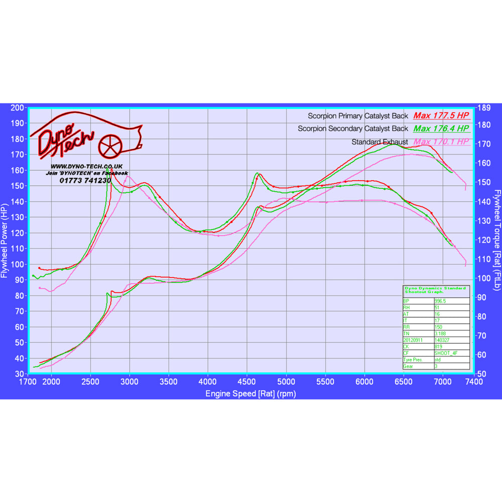 The cat-back system is a direct replacement for the OE therefore no hassle of cutting is required for this system to be fitted. Once fitted Scorpion's system gives the car a measurable reduction in weight when compared to the OE system. This is an improvement most drivers will find hard to rebuff. At the rear end of the system is an acoustically developed silencer to ensure zero drone throughout the rev range.