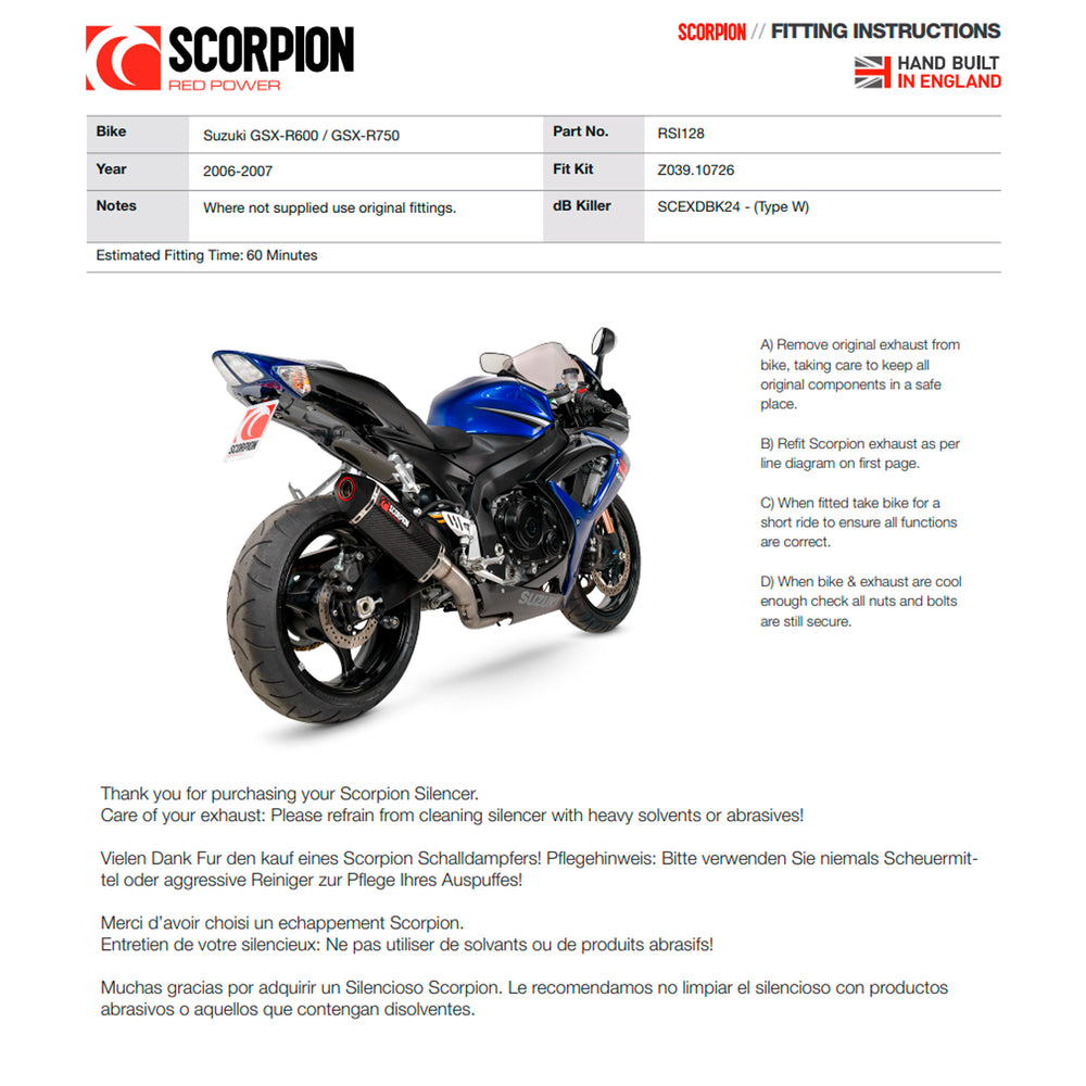 Installation of this Scorpion system requires no changes to the bike's standard settings, nor a remap. The OE system doesn't require cutting, and as a result allows for straightforward installation when using the official Scorpion fitting guides.