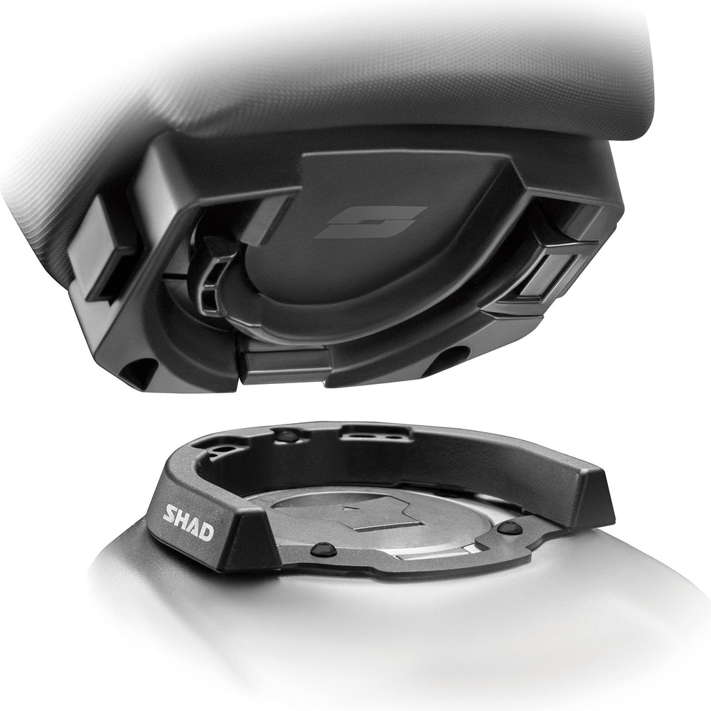 Shad's Click System is the latest evolution of tank bag fitting mechanisms. At its core is ease of use and simple installation on the motorcycle. A single "glove-friendly" push button allows quick release and locking options are available.
