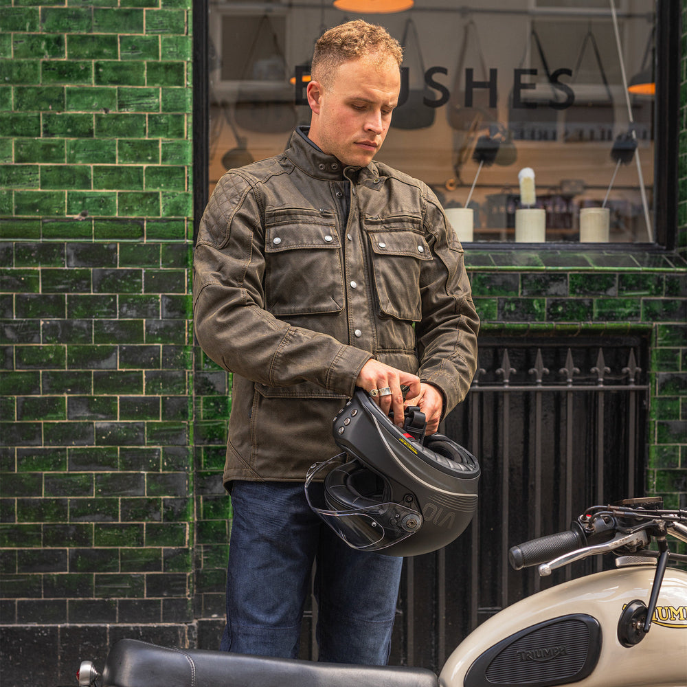 The Sterling wax jacket features a Dry2Dry waterproof/breathable membrane, CE level 2 shoulder and elbow protectors, ventilation zippers and is constructed from highly durable Armourlite Pro Wax fabric. It combines heritage styling influences with the latest in technical fabric innovation for a jacket that packs style, protection and comfort.
