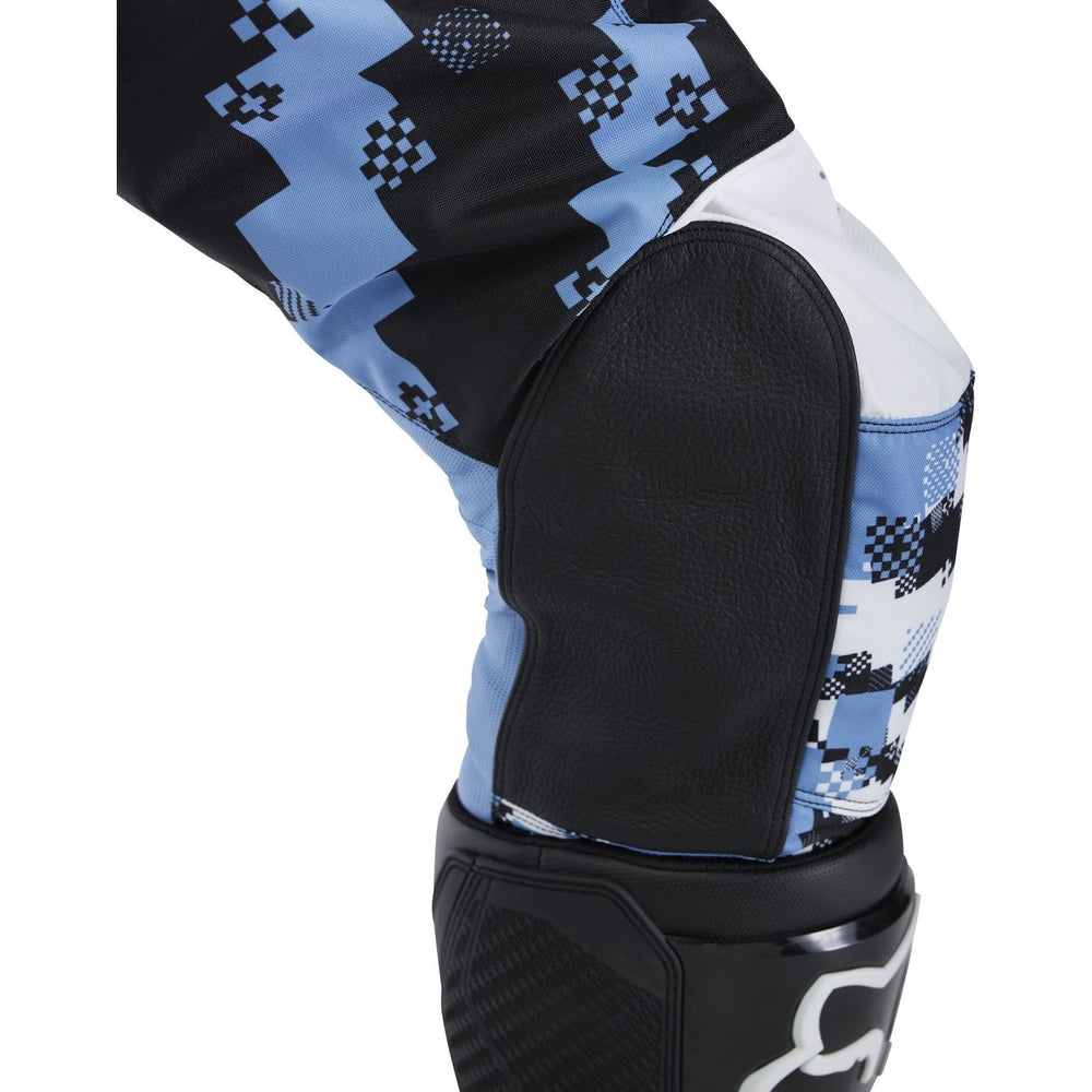 The 180 Pants use Fox Racing's Rider Attack Position (RAP) construction for greater comfort while in the riding position and getting after it. This articulated fit, combined with TruMotion stretch paneling, provides flexibility and more natural movement on the bike. For durability, the pants use a robust 600D polyester construction on the main body. Heat and abrasion-resistant leather knee panels on both legs offer further reinforcement in the most critical wear areas, specifically against rubbing forces like knee braces, guards and the bike itself.