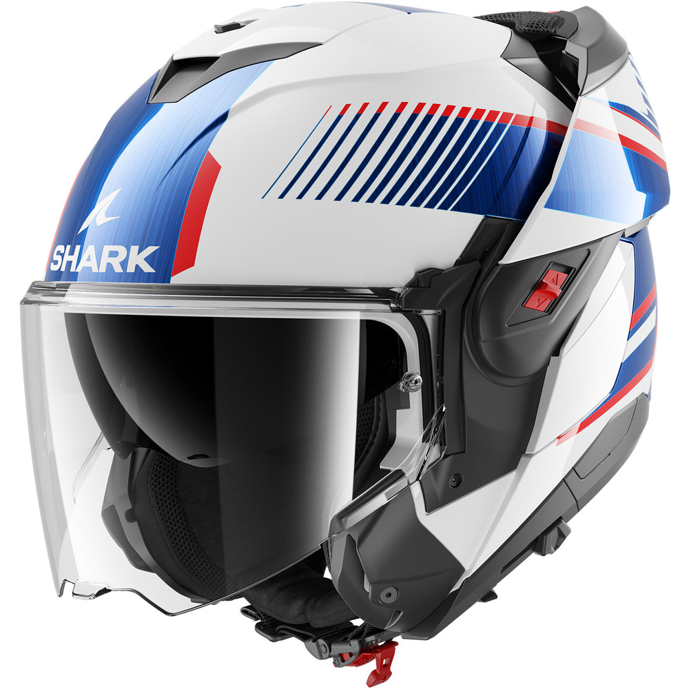 - Shark Oxo Sikter Flip Front Motorcycle Helmet - White Chrome Blue