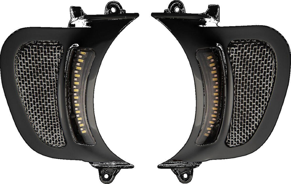 - 1 X Custom Dynamics Genesis 4 Dynamic LED Road Glide Vent Inserts For Harley Davidson FLTRK 1868 2020-2024 Black/Gloss Silver Smoke