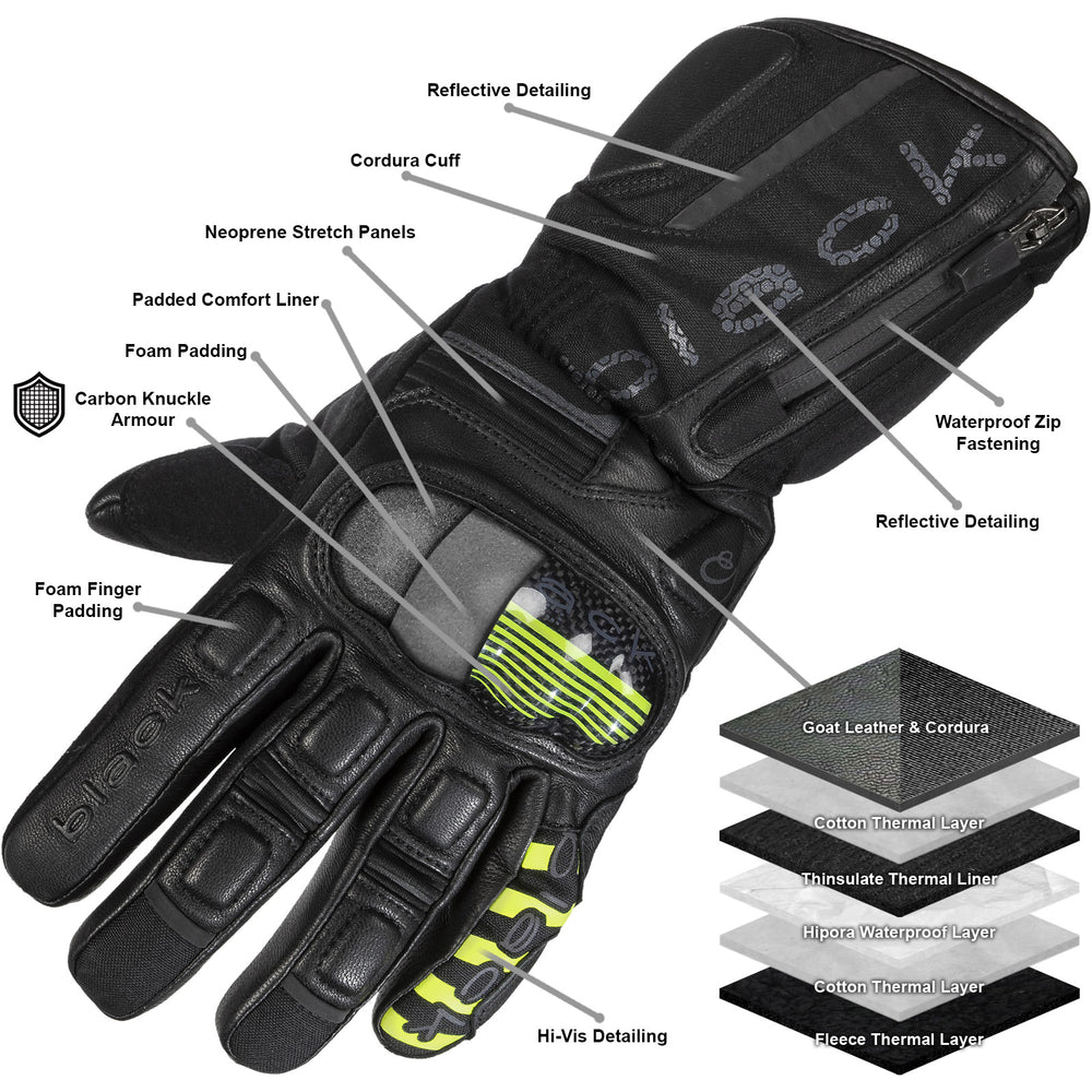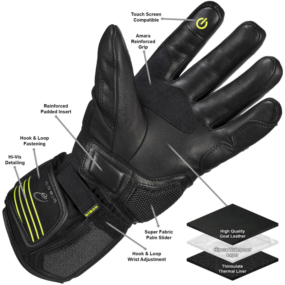 Black Odyssey Waterproof Leather Motorcycle Gloves