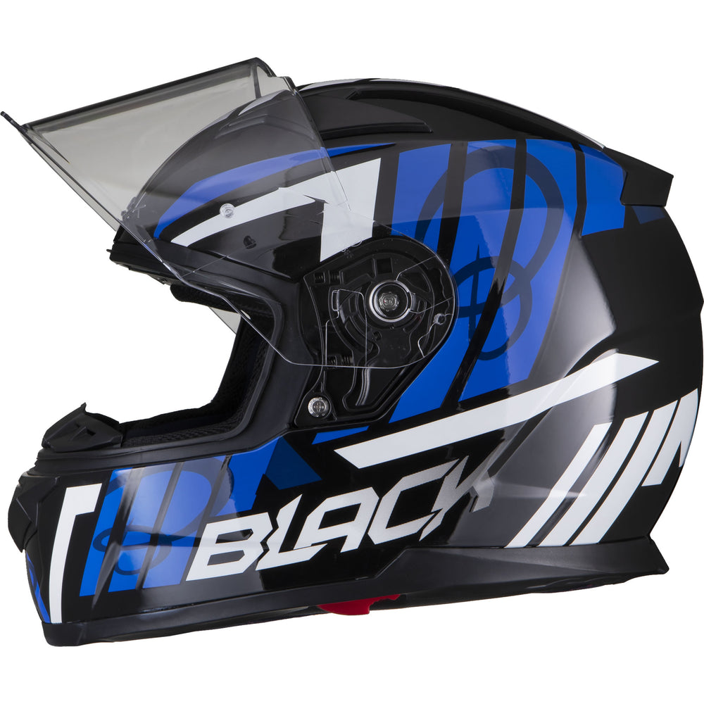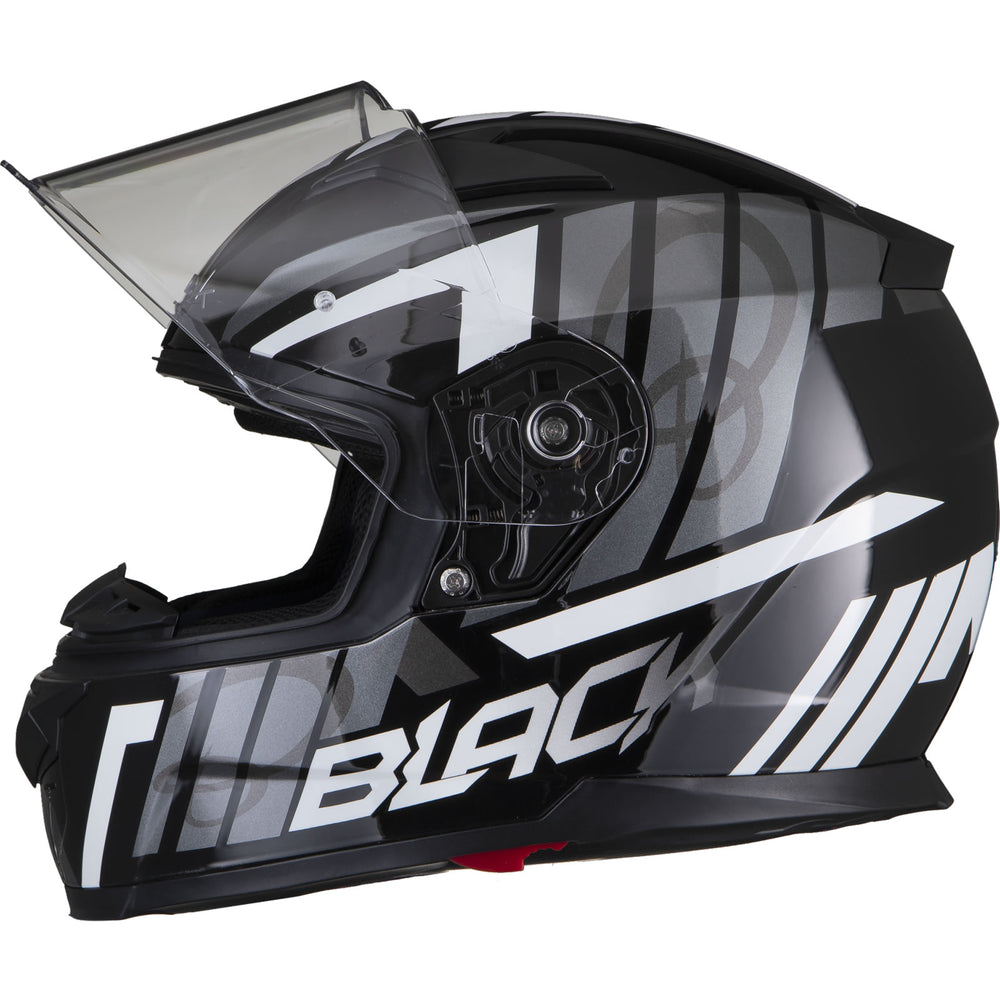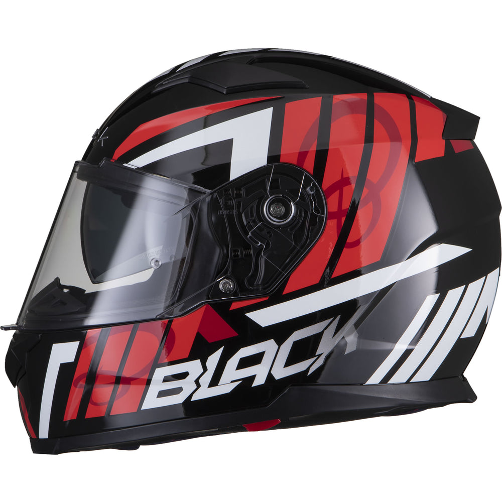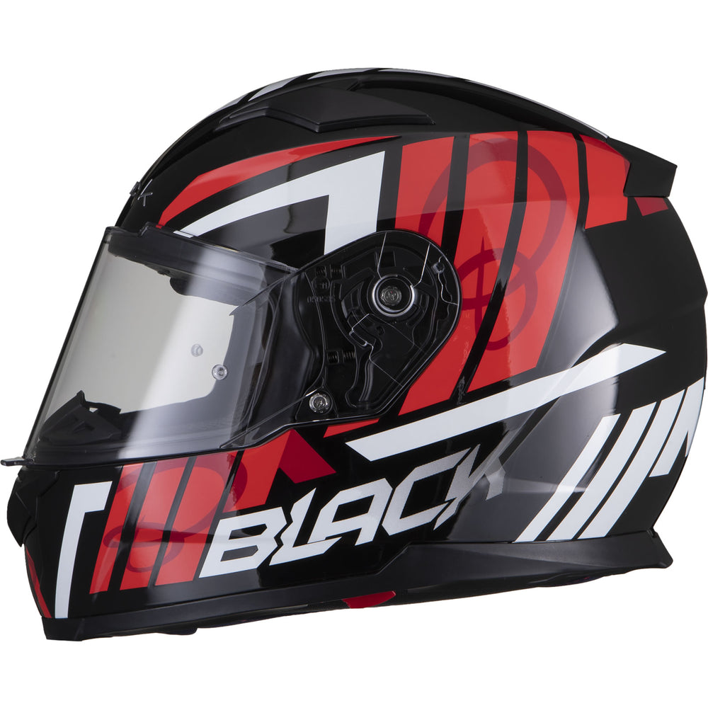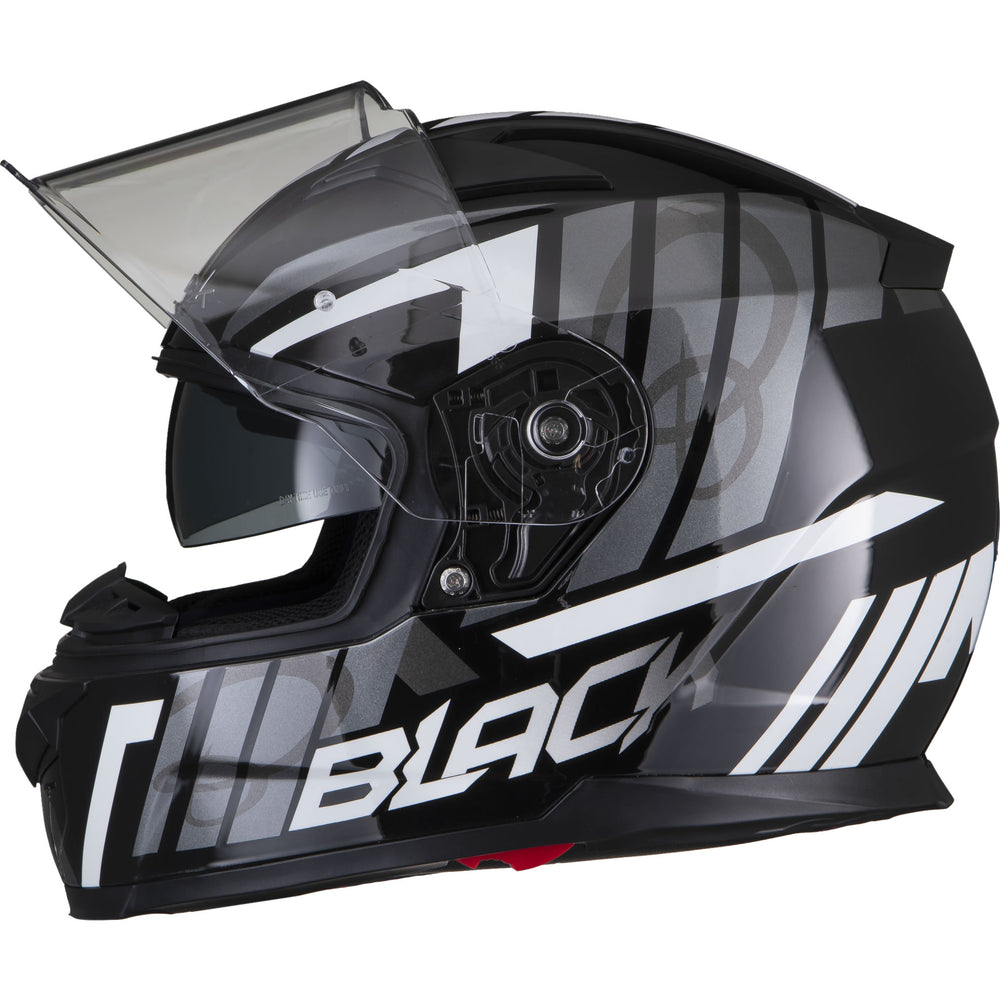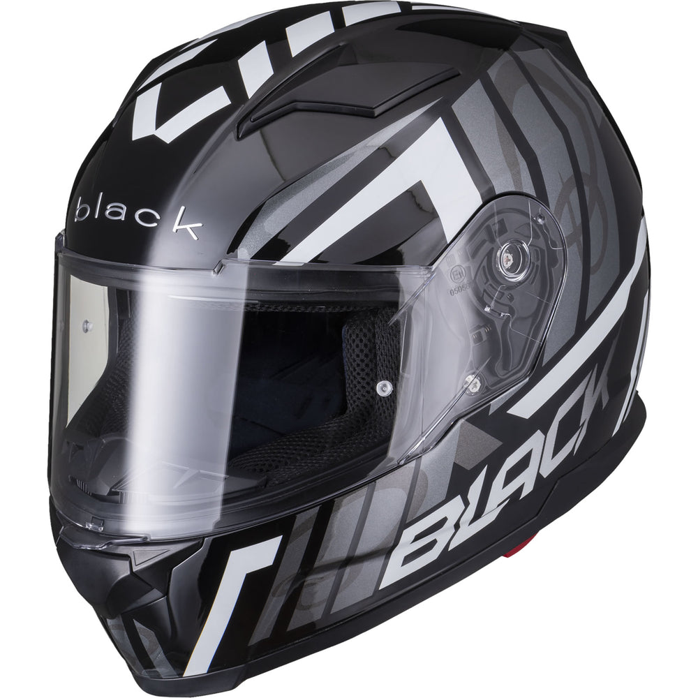 The Black Apex Triple Full Face Motorcycle Helmet is the latest graphic showcased by the newest full Face helmet in the Black helmet range. This full face helmet boasts unmatched shell design thanks to its Advanced Lightweight polycarbonate construction. The premium quality finish is exhibited all around the helmet, whether it be the first-rate graphic available in different colours, the multi-positional Pinlock ready visor that also locks into place, or whether it be the fully removeable liner including chin curtain which also aids in wind noise reduction. The chin vent allows a maximum current of fresh air through, whilst the 2 vents on the top offer a good aerodynamic flow throughout, exiting via the exhaust ports on the rear of the helmet. Fully ECE 22.05 approved for road use throughout Europe. Get the Black Apex Triple helmet today, and be confident your helmet is unmatched in safety and design.