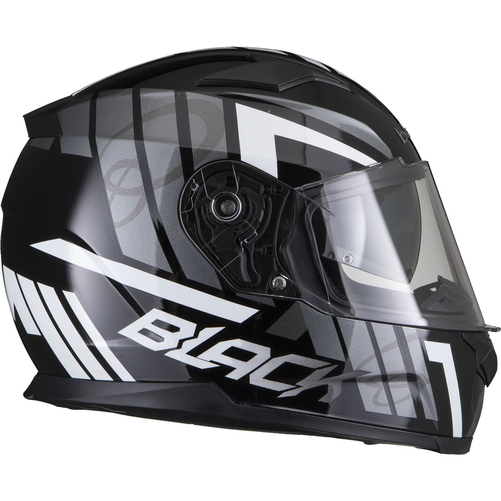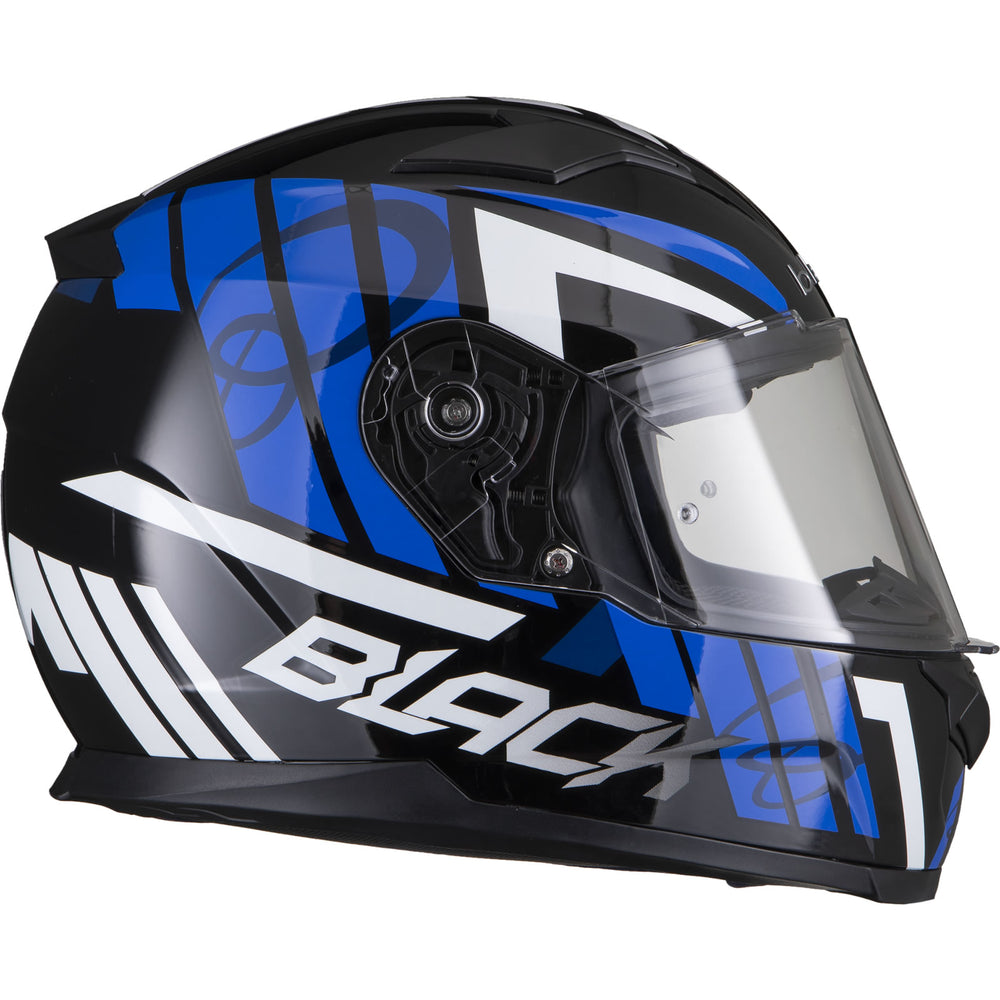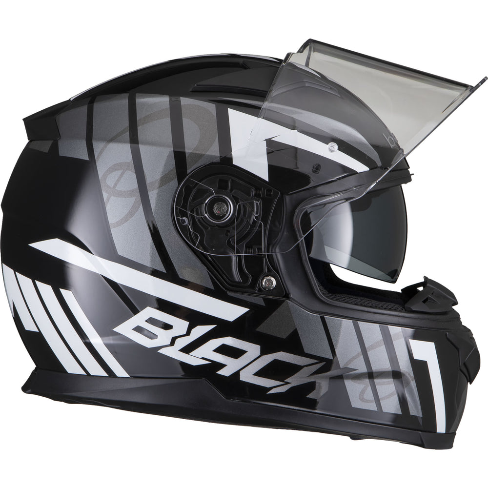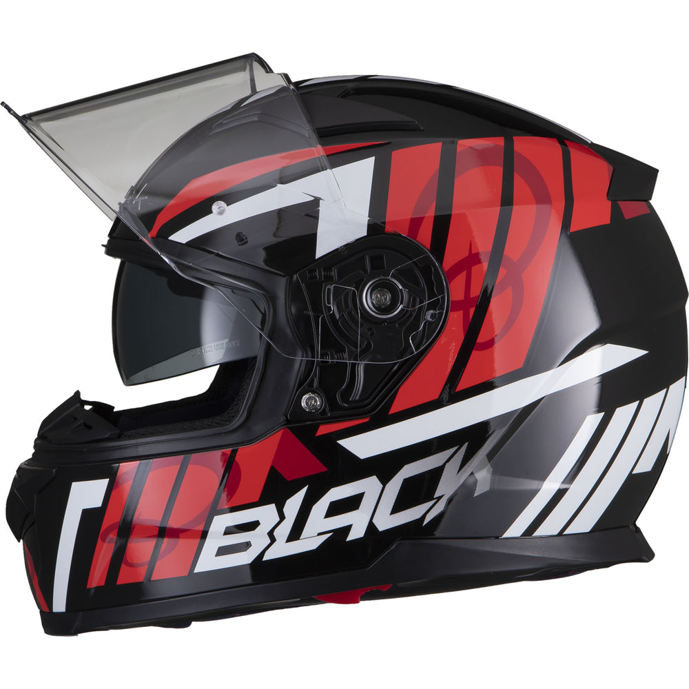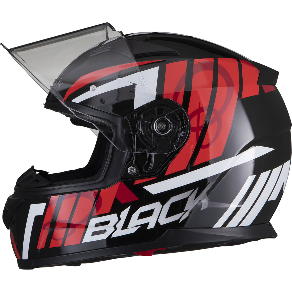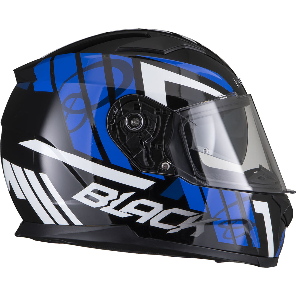The Black Apex Triple Full Face Motorcycle Helmet is the latest graphic showcased by the newest full Face helmet in the Black helmet range. This full face helmet boasts unmatched shell design thanks to its Advanced Lightweight polycarbonate construction. The premium quality finish is exhibited all around the helmet, whether it be the first-rate graphic available in different colours, the multi-positional Pinlock ready visor that also locks into place, or whether it be the fully removeable liner including chin curtain which also aids in wind noise reduction. The chin vent allows a maximum current of fresh air through, whilst the 2 vents on the top offer a good aerodynamic flow throughout, exiting via the exhaust ports on the rear of the helmet. Fully ECE 22.05 approved for road use throughout Europe. Get the Black Apex Triple helmet today, and be confident your helmet is unmatched in safety and design.