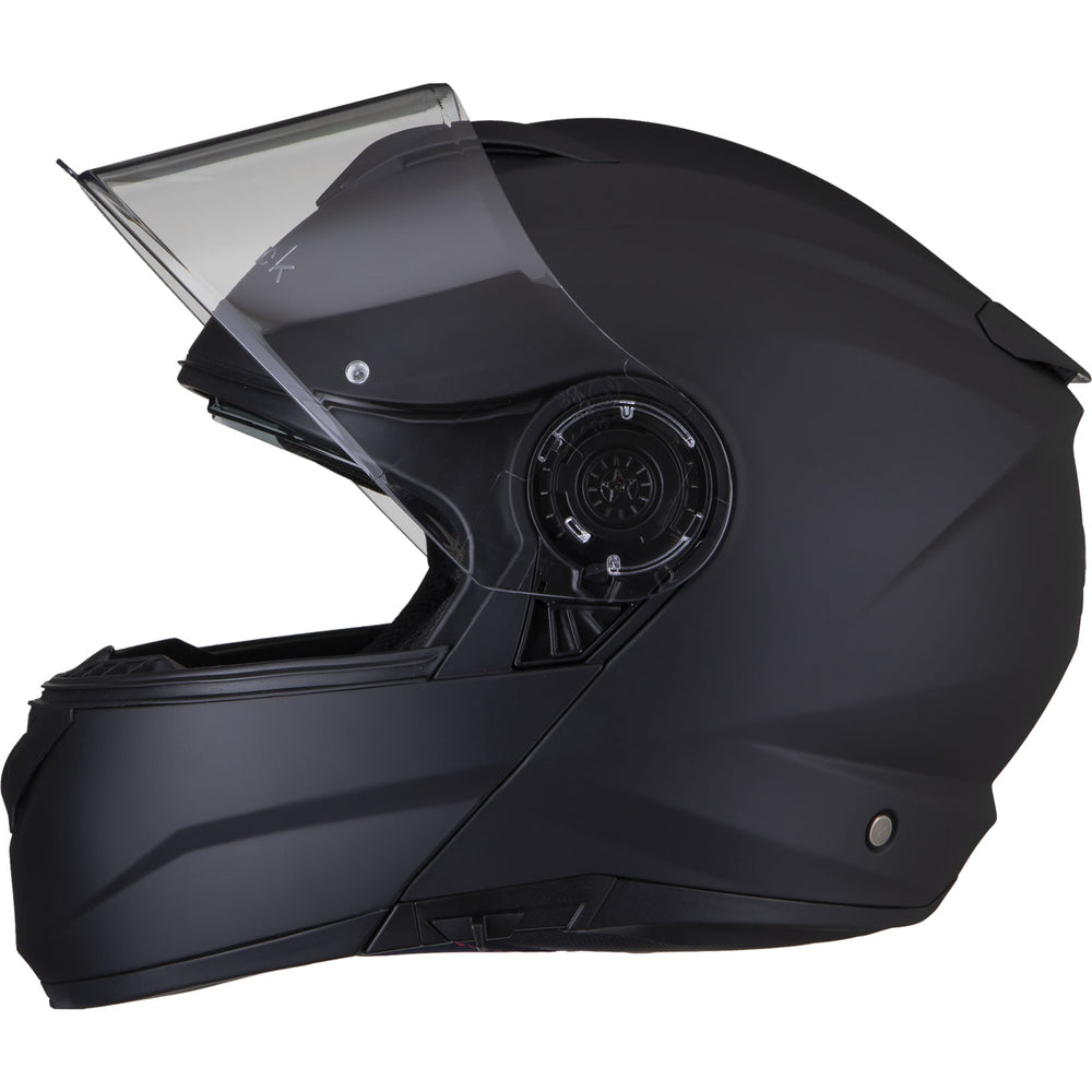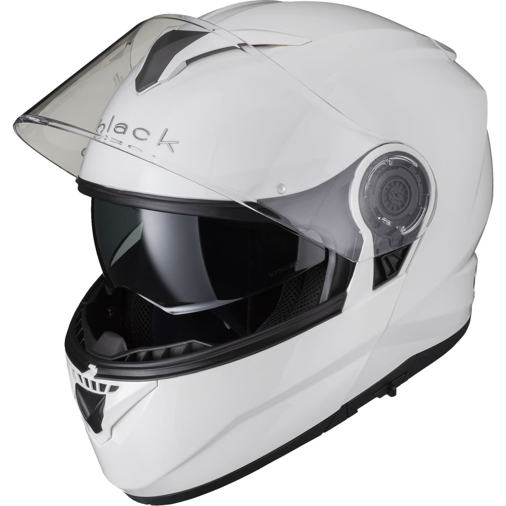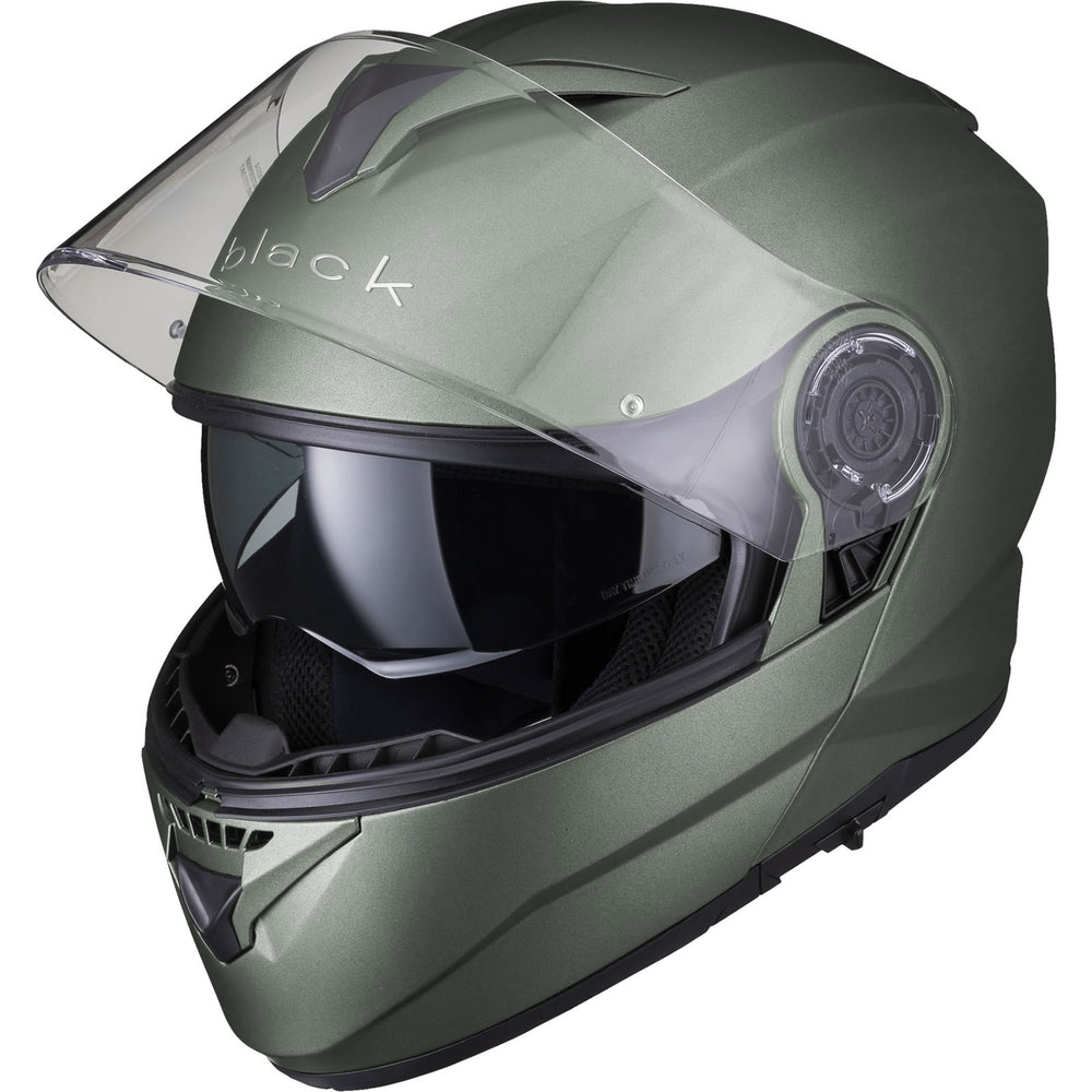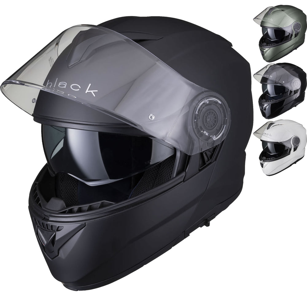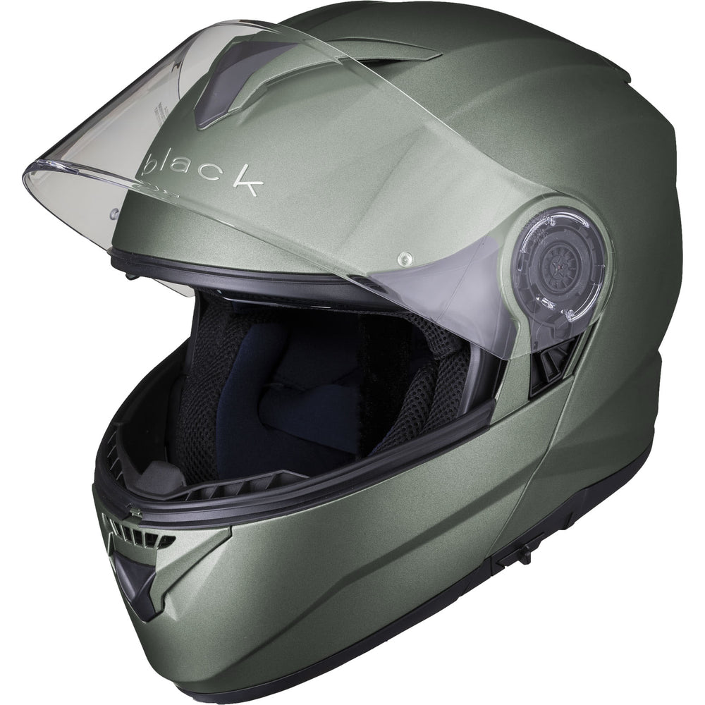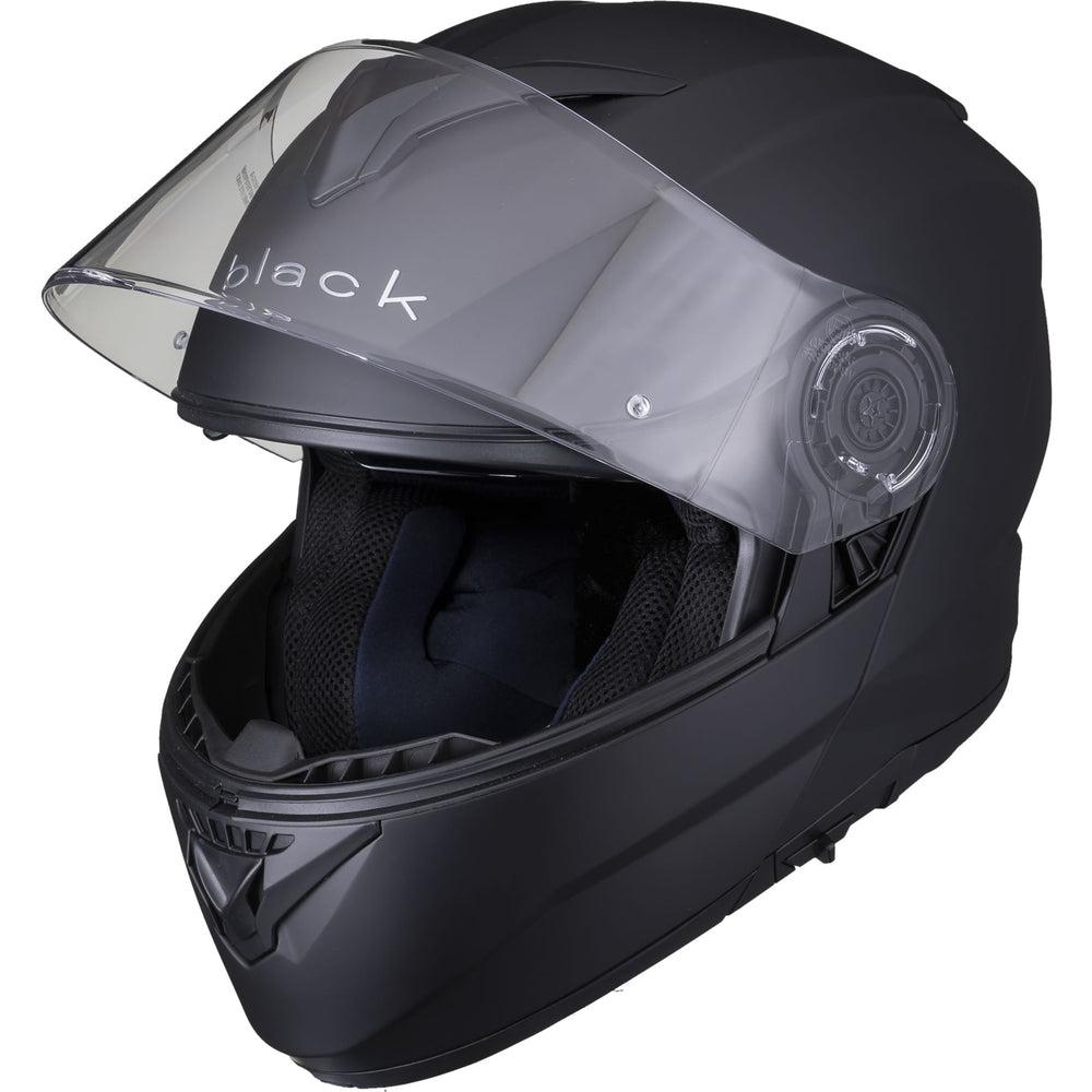 The Black Optimus II SV Flip Front Motorcycle Helmet is the latest Flip Front helmet to be added to the Black helmet range. The Optimus II upholds our goal of premium quality riding gear, without having to empty your wallet. With its Advanced Lightweight polycarbonate shell, aerodynamics was key for this helmet during the design process. The vents allow a smooth airflow throughout the helmet. Fully removable liner alongside a quick release Pinlock ready main visor make it easy to clean and maintain. Fully ECE 22.05 and P/J certified meaning this is approved for riding with the helmet flipped up and in its closed position, inside of Europe. The Black Optimus II helmet really gives you all the freedom you need.