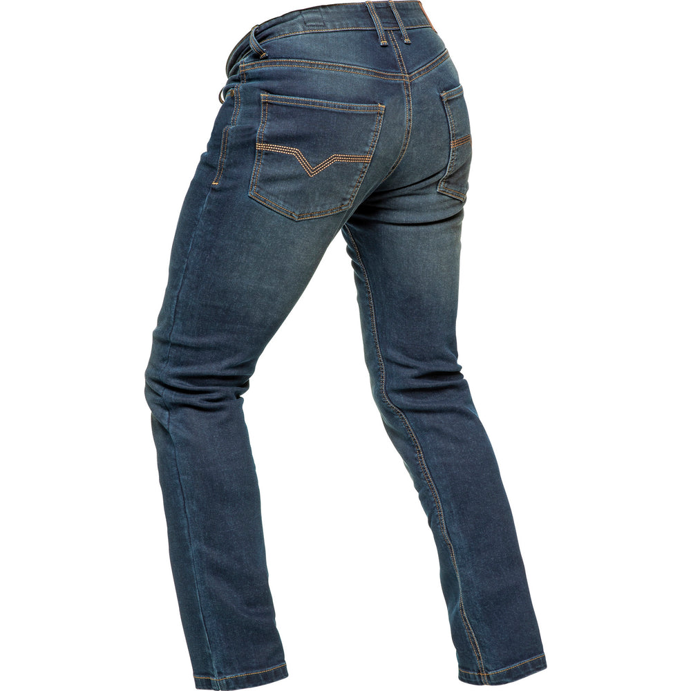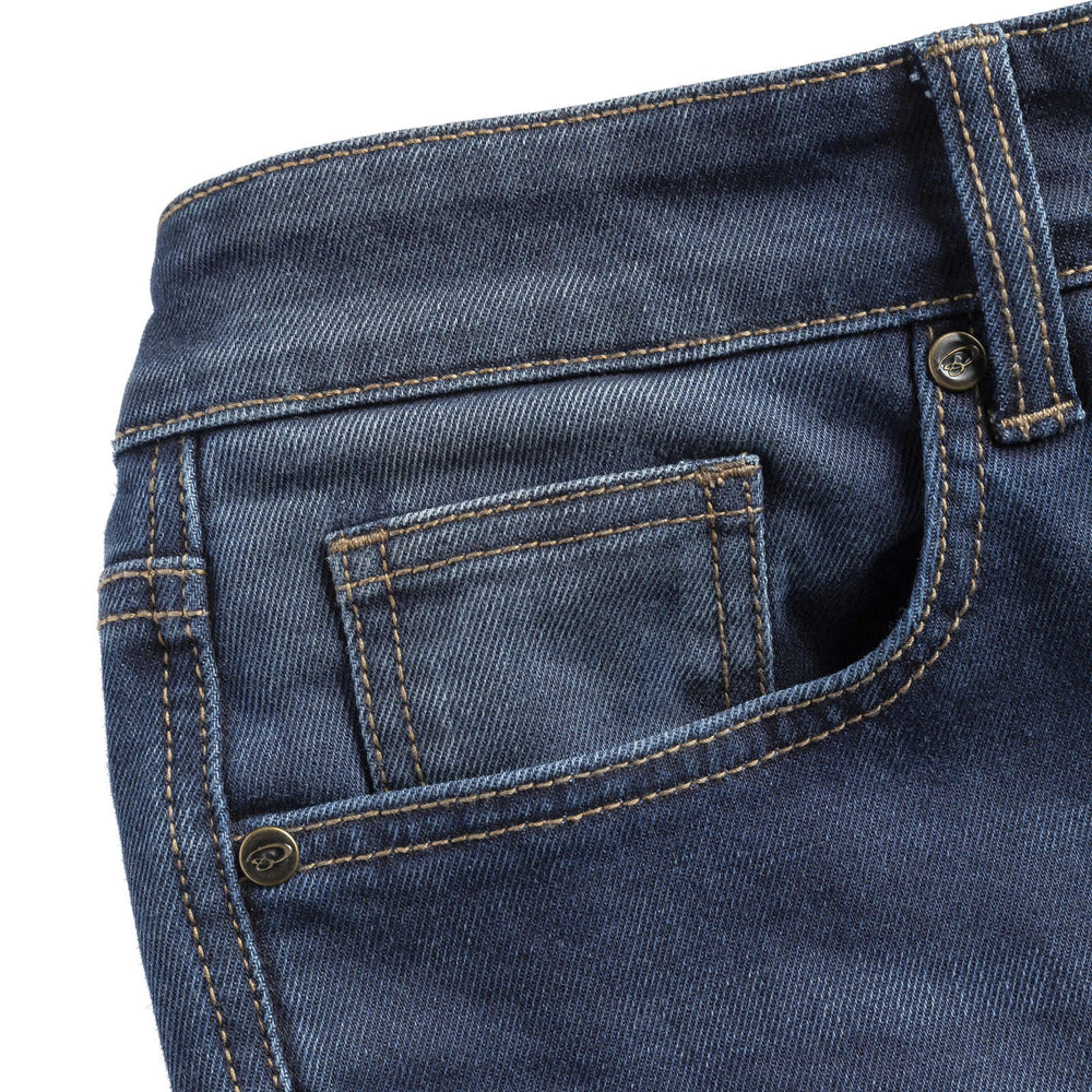 • Adjustable Knee Armour Pockets - The knee armour is inserted into separate pouches, which are then attached inside the jeans using hook-and-loop fastenings. The position of the knee armour pouches can be adjusted, ensuring the armour is in the correct location for the rider