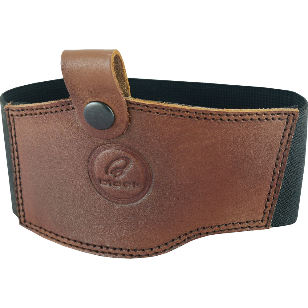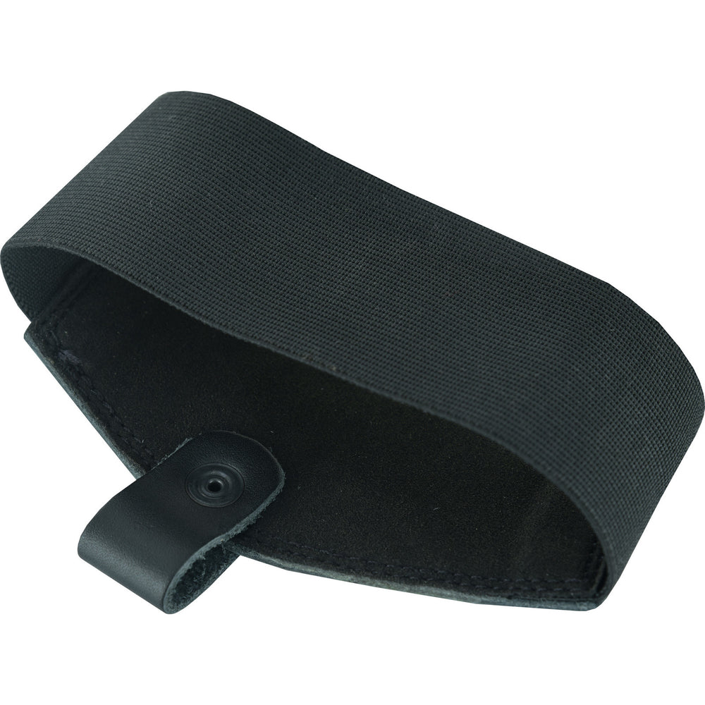 Worn on the left boot, the Black Leather Motorcycle Boot Gear Shifter Pad provides protection for the boot from the gear lever when changing gear and is easy to unfasten and slip off the boot when you're off the bike. The strong elastic strap holds the pad to the boot and the pop-stud fastening is clipped around the lowest lace to keep the pad in position. Produced in quality 1.6mm full grain leather, the pad features Black branding and a twin-stitched outer edge design.