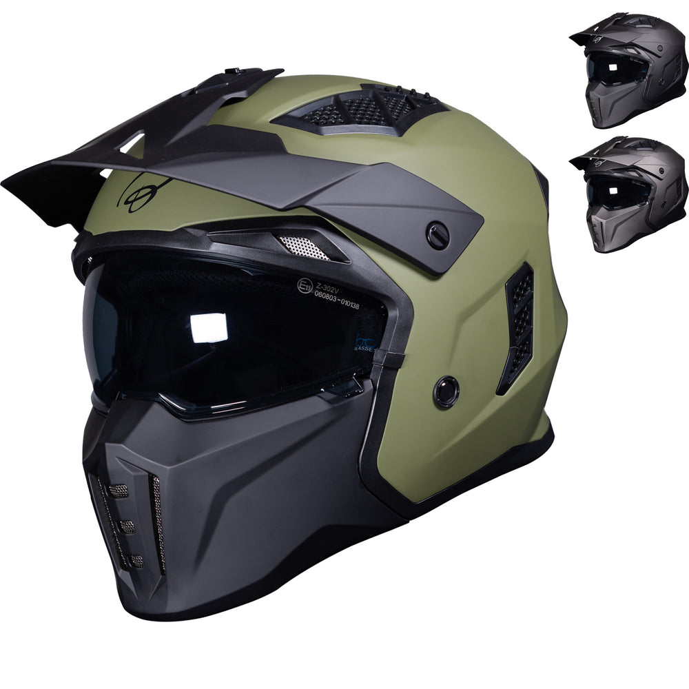 Engineered to meet the latest ECE R22.06 helmet safety standard, the Street Fighter Open Face Motorcycle Helmet by Black is a versatile urban helmet featuring a lightweight ABS shell for durability and an integrated drop-down visor to ensure clear vision in all conditions. The detachable chin section allows for multiple configurations, keeping the wind off your face when needed. Additionally, the removable adjustable peak adds a customisable element to suit your style and preference. The Black Street Fighter Helmet makes for a great choice for riders seeking adaptability, safety, and sleek design.
