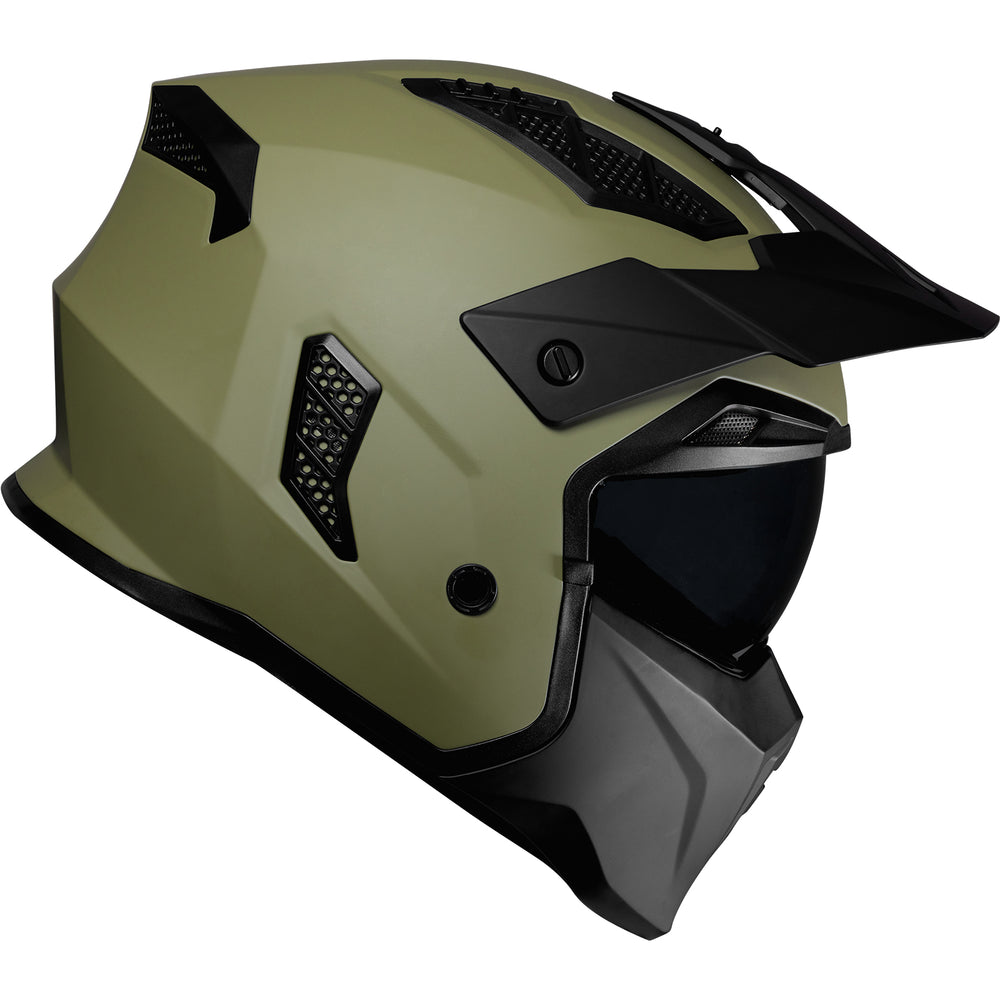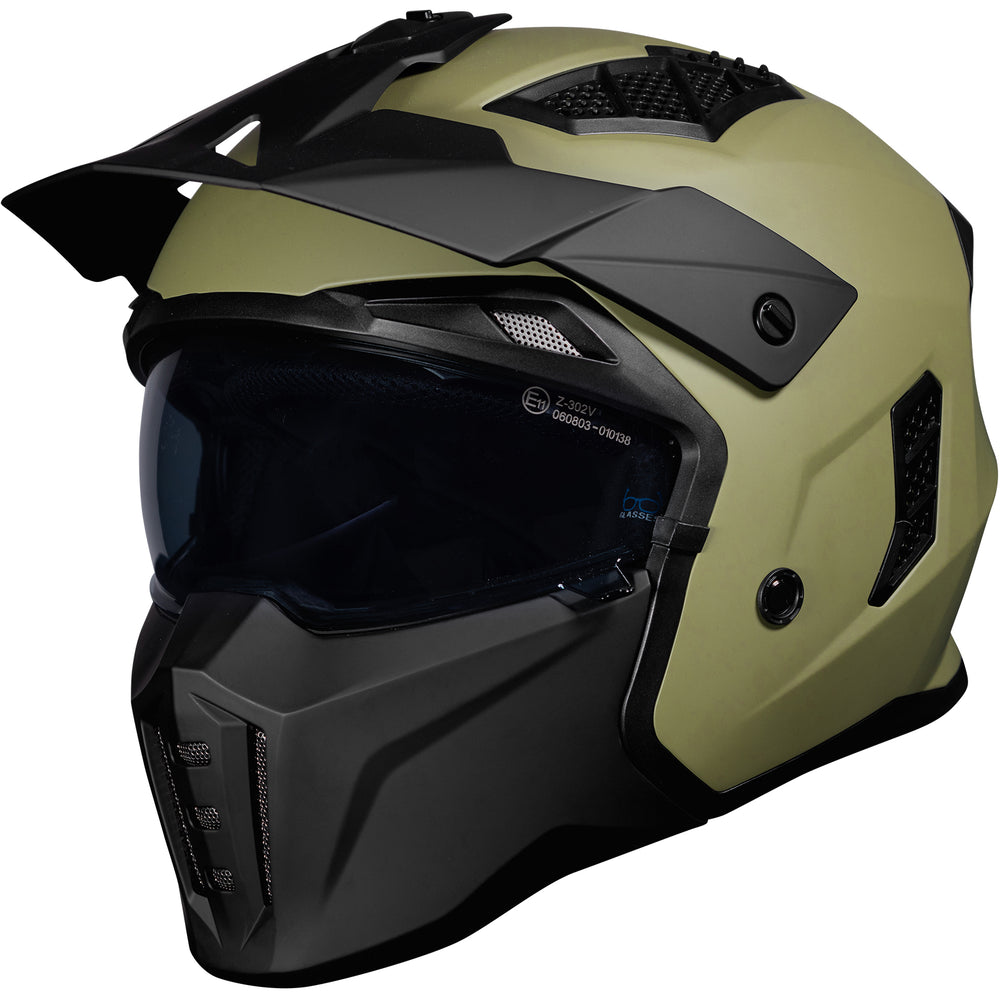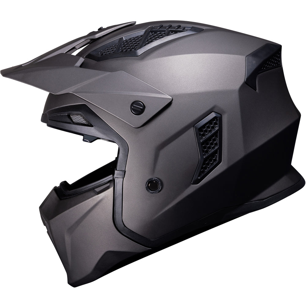 - Aggressive Open Face Urban Helmet With Removable Chin Section - The Black Street Fighter's angular details make a statement and the removable chin section keeps the wind off your face.