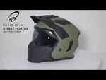 Engineered to meet the latest ECE R22.06 helmet safety standard, the Street Fighter Open Face Motorcycle Helmet by Black is a versatile urban helmet featuring a lightweight ABS shell for durability and an integrated drop-down visor to ensure clear vision in all conditions. The detachable chin section allows for multiple configurations, keeping the wind off your face when needed. Additionally, the removable adjustable peak adds a customisable element to suit your style and preference. The Black Street Fighter Helmet makes for a great choice for riders seeking adaptability, safety, and sleek design.
