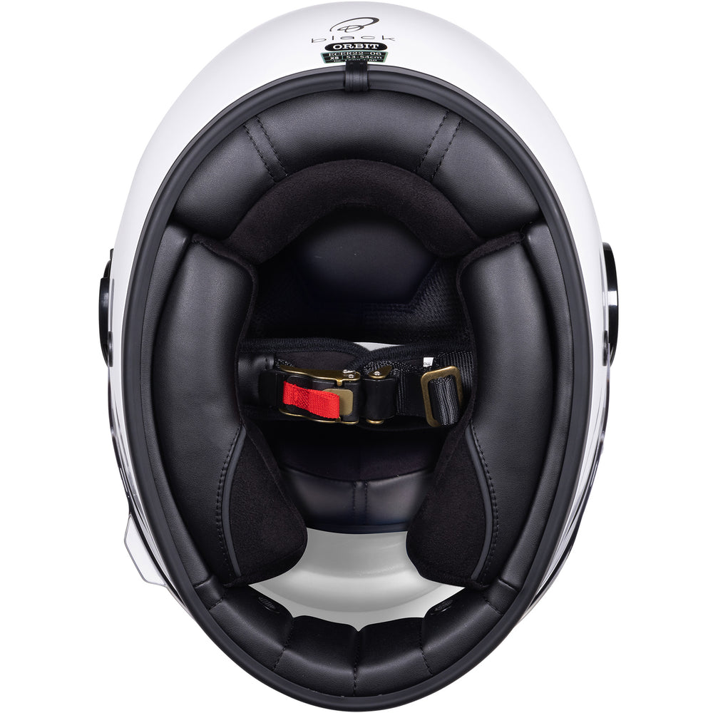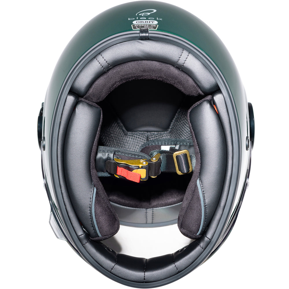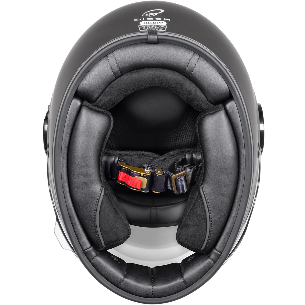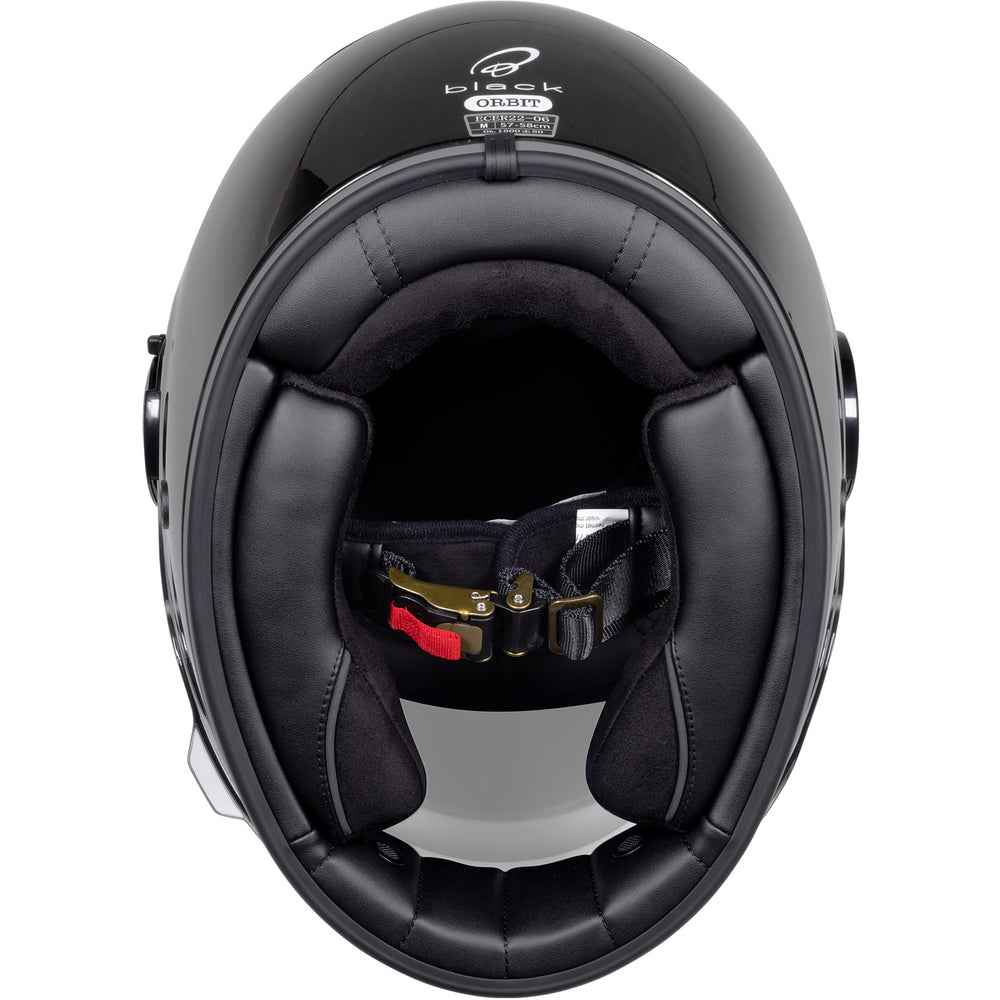 Harking back to a classic era of motorcycle racing, the Black Orbit's clean design lends itself effortlessly to cafe racers and lovers of the vintage look. A perfect fusion of modern safety and classic style, this retro-inspired helmet meets the latest ECE R22.06 safety standard, providing solid protection with its lightweight ABS shell. The multi-positional visor is Pinlock ready and can be locked in the closed position using a slider on the left side of the helmet. Inside, the fully removable plush lining and speaker recesses in the shell provides exceptional comfort and the option for communication system integration. The Orbit is a stylish choice for riders who appreciate both heritage and contemporary technology.