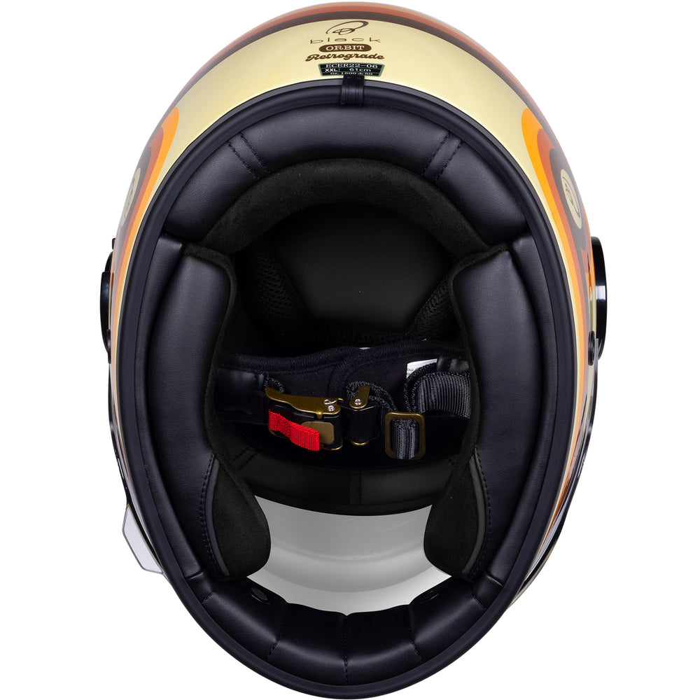 Harking back to a classic era of motorcycle racing, the Black Orbit's clean design lends itself effortlessly to cafe racers and lovers of the vintage look. A perfect fusion of modern safety and classic style, this retro-inspired helmet meets the latest ECE R22.06 safety standard, providing solid protection with its lightweight ABS shell. The multi-positional visor is Pinlock ready and can be locked in the closed position using a slider on the left side of the helmet. Inside, the fully removable plush lining and speaker recesses in the shell provides exceptional comfort and the option for communication system integration. The Orbit is a stylish choice for riders who appreciate both heritage and contemporary technology.