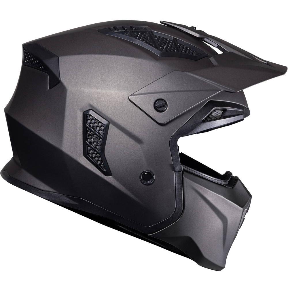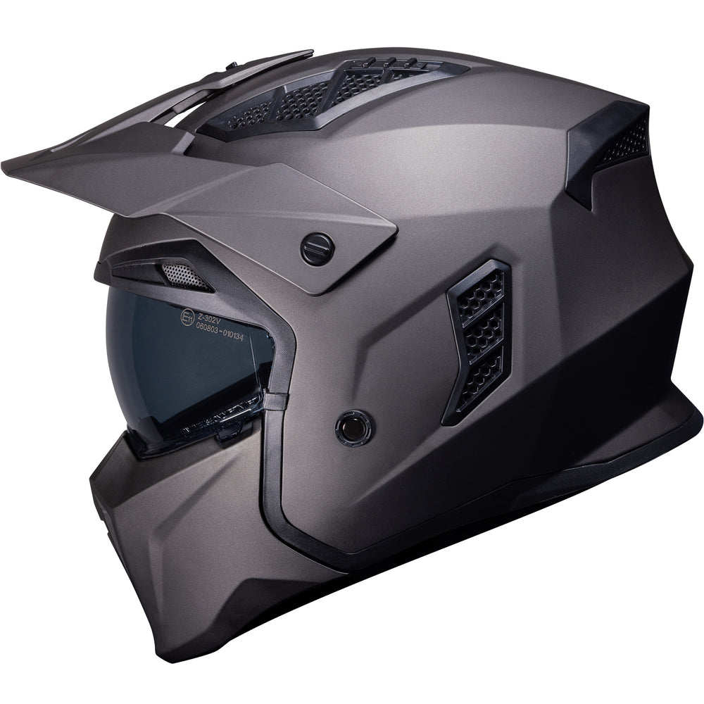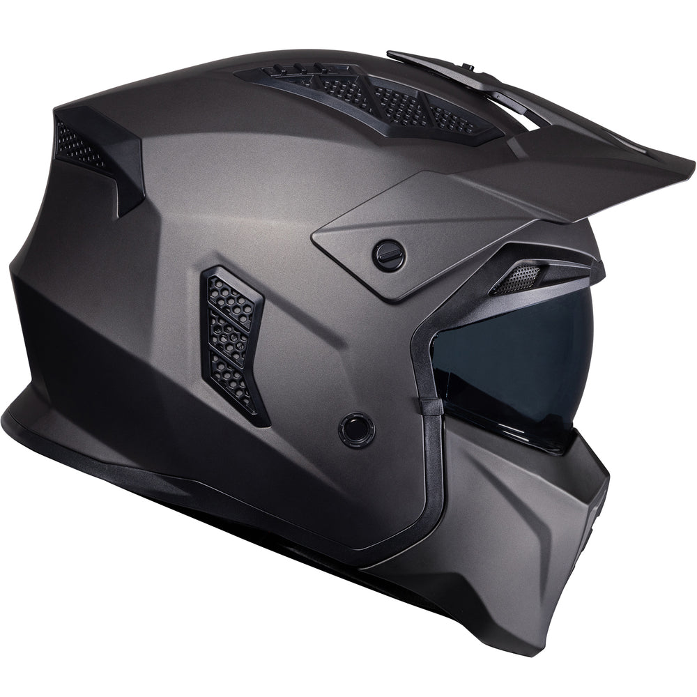 - Aggressive Open Face Urban Helmet With Removable Chin Section - The Black? Street Fighter's angular details make a statement and the removable chin section keeps the wind off your face.