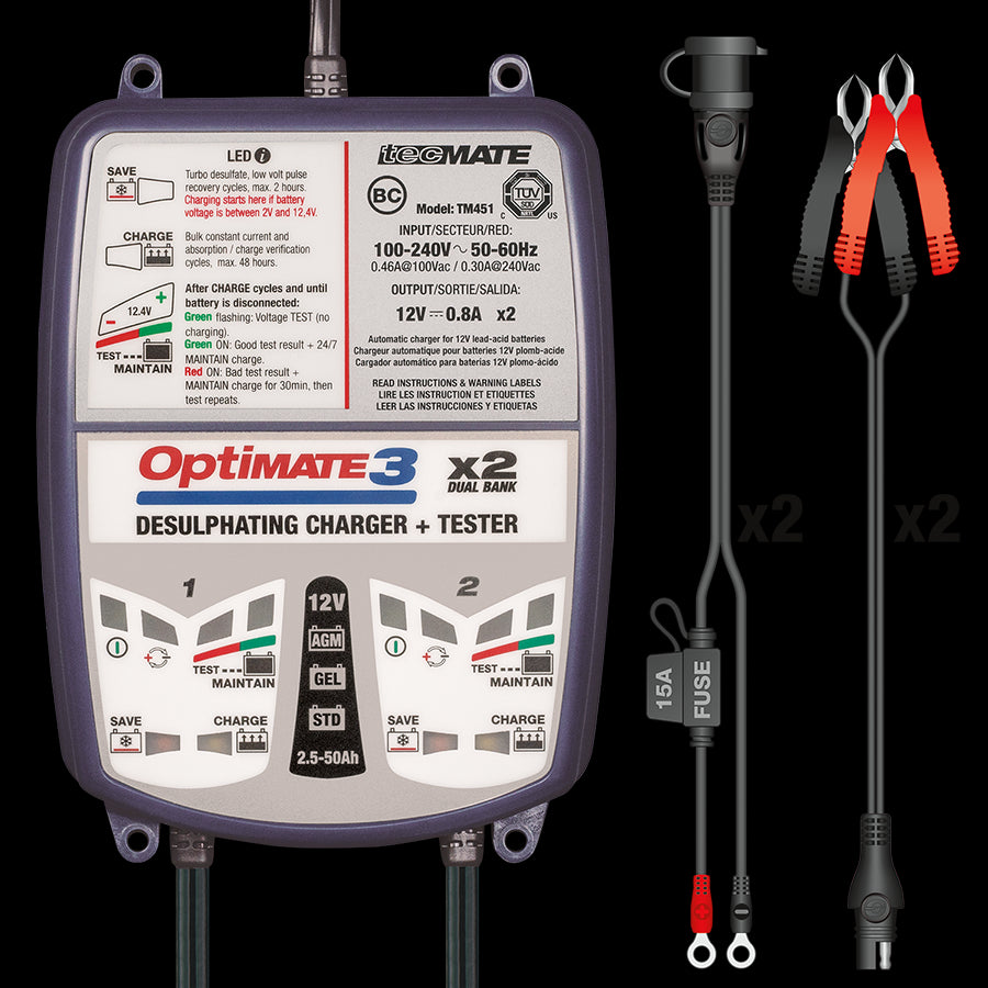 - 1 X TecMate Optimate 3 X 2 Bank Battery Charger