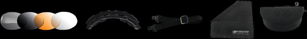 - Four sets of easy-change lenses provided; anti-fog smoke, amber, clear and dual-grade reflective