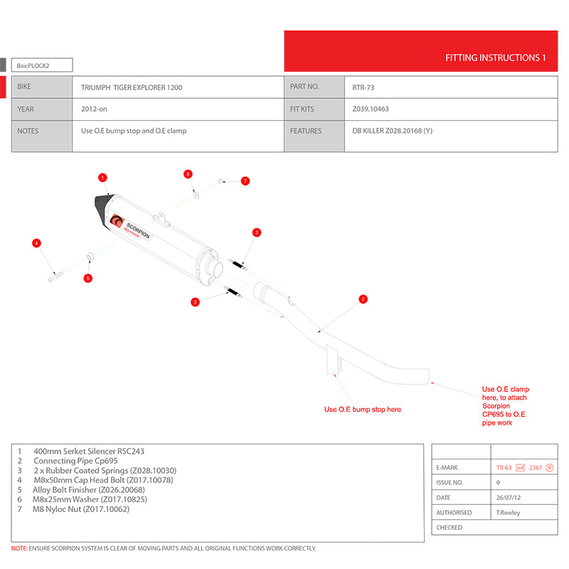 - Fittings/Instructions. All scorpion products are supplied with everything needed to fit and ride, along with parts drawings and picture Instruction where necessary.